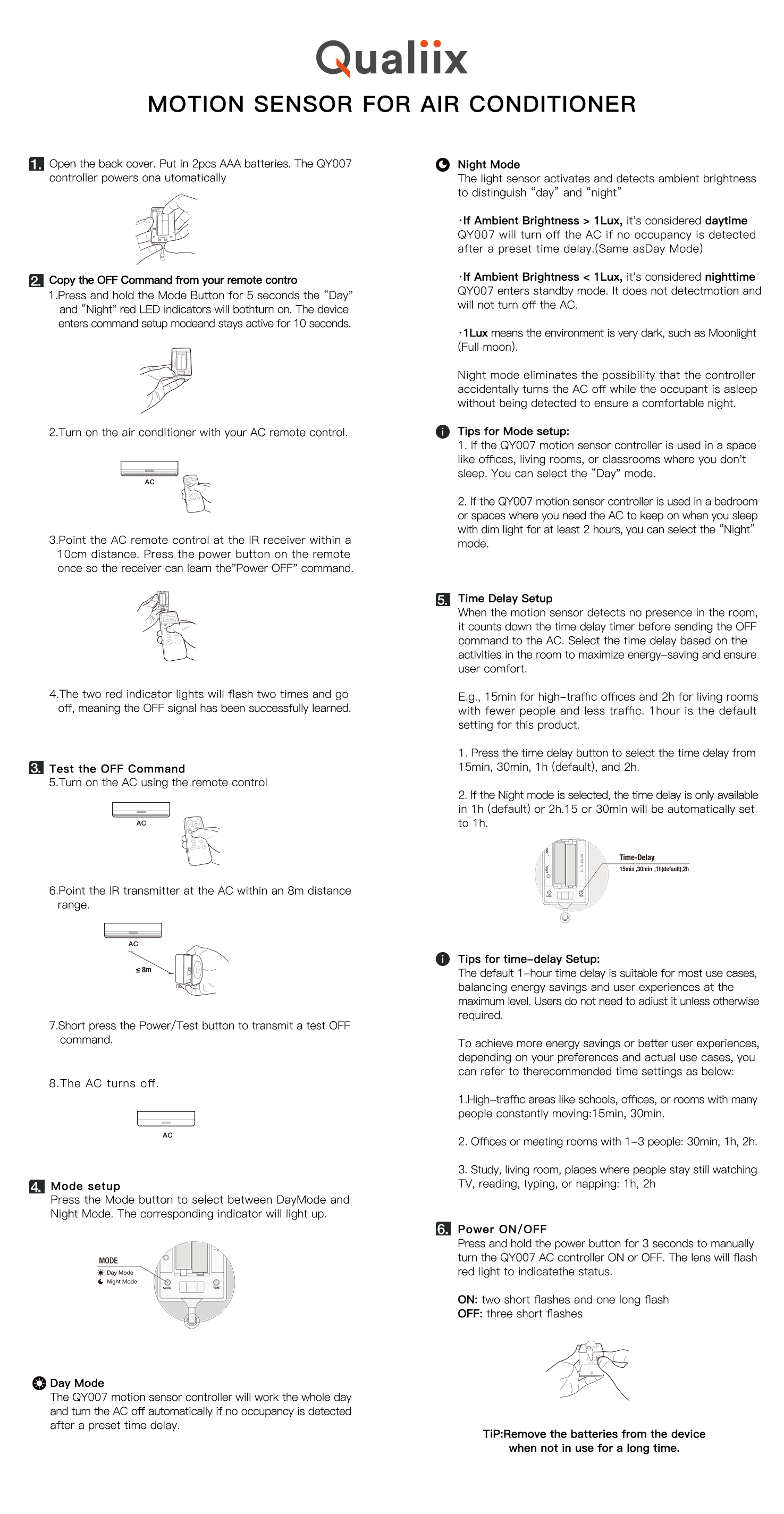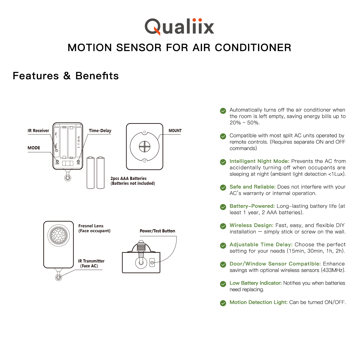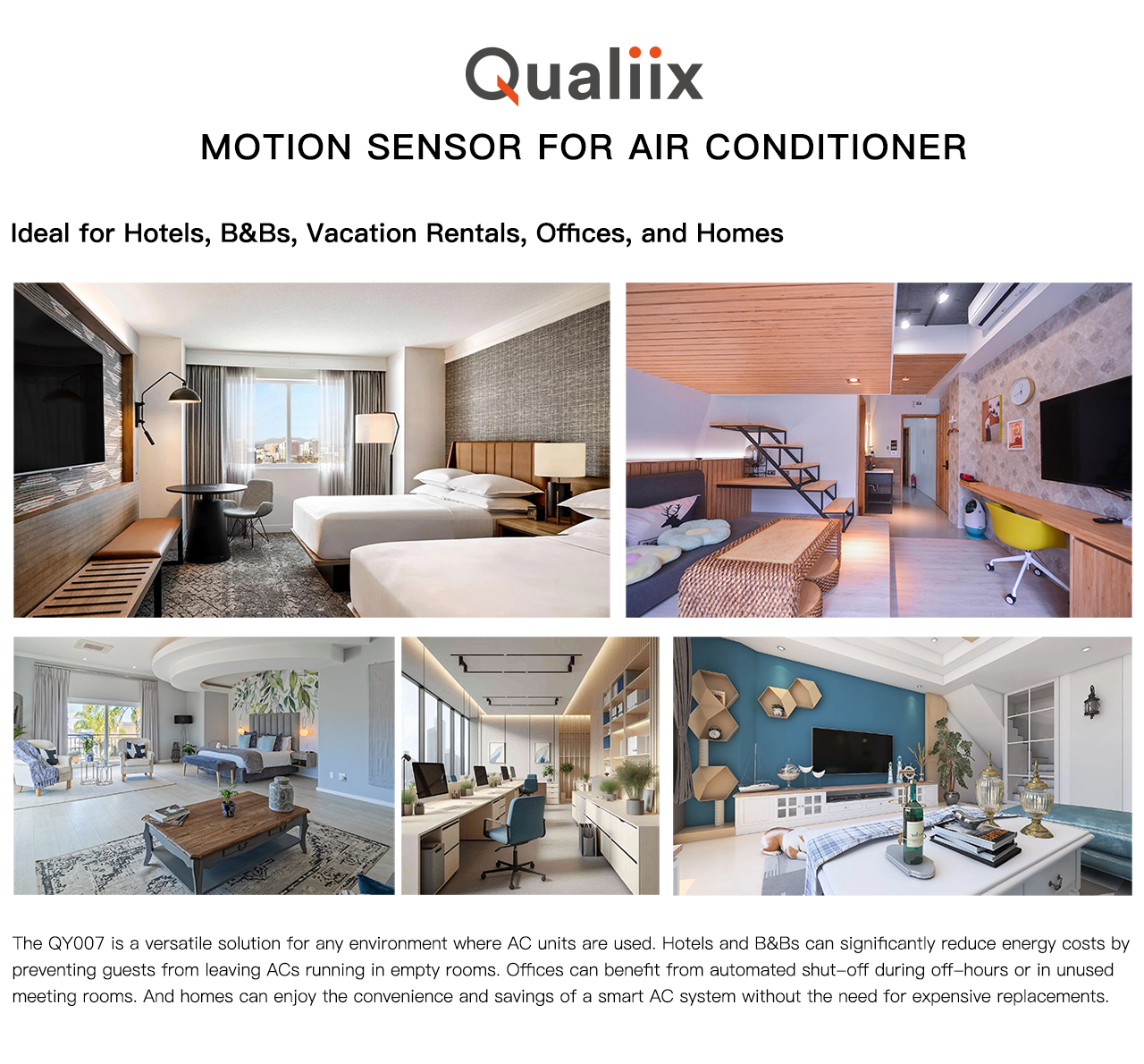 The Qualiix Air-Con Saver is an eco-friendly device that reduces energy waste by automatically turning off your air conditioner when the room is empty. It lowers electricity costs by 20% to 50%, with savings covering its cost in just 1.5 months. Easy to install and compatible with most split AC units, it features Night Mode, long battery life, and reliable performance, making it ideal for homes, hotels, and guesthouses.